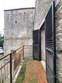 al piano primo troviamo un soggiorno, una cucina dotata di camino, una camera matrimoniale con accesso a un balcone e un bagno finestrato con vasca;