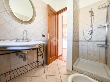 Attraverso la scala in marmo si arriva al primo piano, dove è presente una camera da letto matrimoniale con balcone privato con vista aperta ed un secondo bagno finestrato con box doccia.