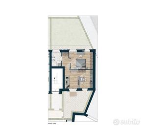 Al piano terra proponiamo appartamento di due locali con giardino privato e ingresso indipendente, composto da soggiorno con cucina a vista, camera matrimoniale, disimpegno e bagno finestrato.
