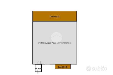 L'immobile è disposto su due livelli, zona giorno e zona notte, che allo stato attuale è così composta: al primo piano troviamo un unico ambiente, un bagno, un terrazzo e un balcone, al secondo piano un disimpegno che divide le tre camere da letto, due bagni, due balconi e un terrazzo.