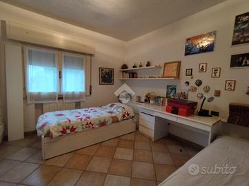 Salendo al piano superiore tramite una scala in legno massello, si accede alla zona notte composta da quattro camere matrimoniali e due bagni, offrendo spazi generosi, ideali per famiglie numerose o per chi necessita di stanze aggiuntive per ospiti o studio.
