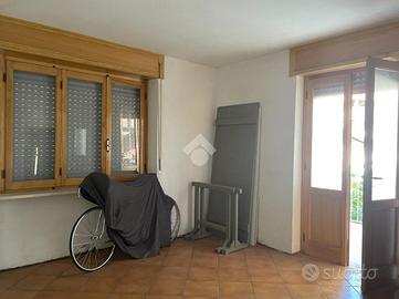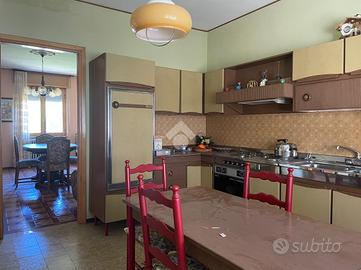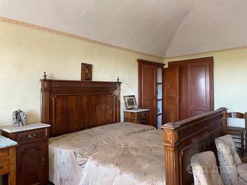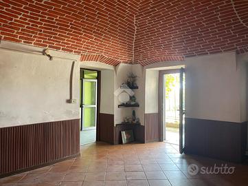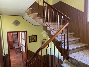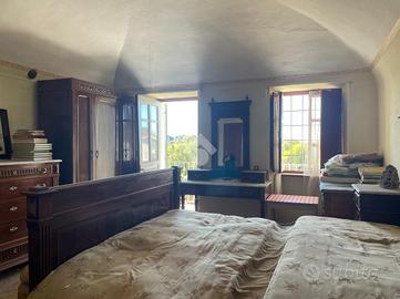 Questo immobile si trova in una piccola e tranquilla frazione del Comune di Mezzana Mortigliengo. Si sviluppa su tre piani abitativi e può essere sfruttata anche come soluzione bifamiliare. Al piano terra troviamo una prima cucina collegata con una tavernetta con soffitto a volte e accesso diretto al giardino. Sullo stesso piano vi è un ampio spazio ad uso officina o laboratorio ed una cantinetta. Al piano superiore la zona notte composta da un'ampia camera da letto matrimoniale, con volta e parquette e dotata di balcone collegato al terrazzino, una seconda cameretta più piccola ed a completare il piano un wc ed una cabina armadio. Al secondo ed ultimo piano il secondo appartamento composto da cucina abitabile, sala pranzo e due camere da letto, anche qui vi è un lungo balcone e terrazzo con vista sul verde e sulla pianura. Collegato alla casa vi è un box auto con un ulteriore stanza che può essere sfruttata come studio. Il giaridno adiacente alla casa misura circa 280 metri quadrati e si divide su tre terrazzamenti. Poco distante dalla casa vi è una seconda autorimezza di 42 metri quadrati che può ospitare comodamente due macchine. La casa viene riscaldata mediante caldaia a gasolio ma sono presenti anche delle canne fumarie a cui collegare eventuali stufe.