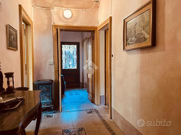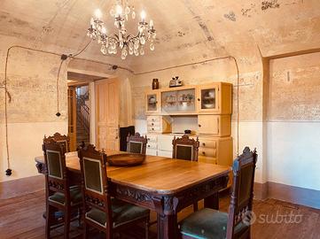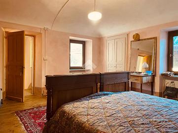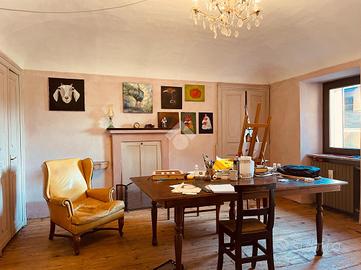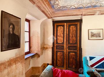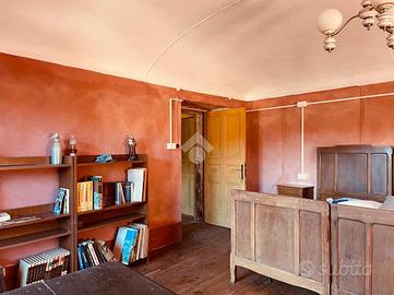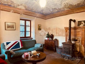 Questa casa d'epoca si trova in posizione dominante e soleggiata, con vista sul paesaggio e sul verde circostante. All'interno di una piccola frazione del comune di Mezzana, dispone di spazi esterni e di una buona condizione d'indipendenza. Al piano terreno offre una zona giorno di generose dimensioni. L'ingresso classico disimpegna la cucina abitatabile,la sala da pranzo ed un accogliente salotto con camino. Le volte a botte affrescate delle ultime due stanze definiscono nell'immediato il carattere di questa dimora. Da questo piano si accede al cortile interno circondato da mura in pietra che lo rendono appartato,discreto ed accogliente. Si puo' raggiungere questa zona anche dall'esterno attraversando un vecchio portone in legno molto evocativo. Tornando in casa, e percorrendo la scala orginale con corrimano in ferro battuto si arriva al secondo piano in cui sono attualmente posizionati l'ampio studio con balcone ed una spaziosa camera da letto. E' presente anche una stanza piu' piccola in cui e' possibile ripristinare una seconda cucina. Il terzo livello accoglie al momento due stanze da letto ed un bel locale panoramico in cui e' si possono ottenere una deliziosa sala lettura ,uno spazio per gli hobbies o una cabina armadio. L'ultimo piano offre una stanza verandata ed i locali del sottotetto. L'immobile e' servito da un bagno di piccole dimensioni con doccia e da un bagnetto di servizio. Tutto in questa casa richiama il passato e la bellezza degli immobili pregni di storia. Percorrendo le sue stanze e' possibile trovare porte e pavimenti in legno, i vetri colorati, alcuni affreschi, diversi camini nelle stanze principali e qualche pavimento in cotto originale. Tutto e' in buono stato di conservazione. La proprieta' e' arricchita ulteriormente da un fabbricato accessorio situato all'interno del cortile. Offre due autorimesse ed un deposito sovrastante in cui e' possibile ricavare un gradevole dehor per trascorrere il tempo all'aperto.In alternativa puo' divent...