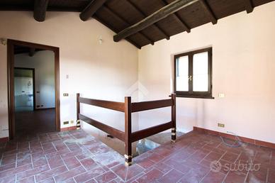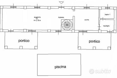 L'immobile si apre direttamente sull'ampio giardino privato, impreziosito da due portici coperti, perfetti per pranzi e cene all'aperto durante la bella stagione, e da una piscina attualmente in disuso, con la possibilità di essere ripristinata. La proprietà dispone di doppi ingressi, sia dal lato strada che dal giardino. Al piano terra si trovano un ampio soggiorno al grezzo, facilmente personalizzabile secondo le proprie esigenze, una spaziosa cucina abitabile, un bagno di servizio e un comodo ripostiglio, anch'essi da ultimare. Una scala a chiocciola in muratura conduce al piano primo, dove si sviluppa la zona notte composta da tre camere passanti, un bagno con doccia e un balcone con affaccio su una tranquilla strada a fondo chiuso.