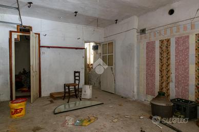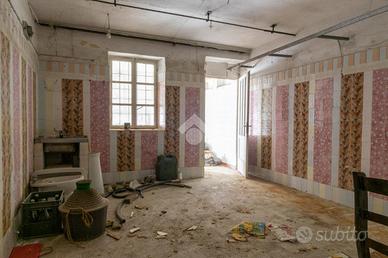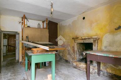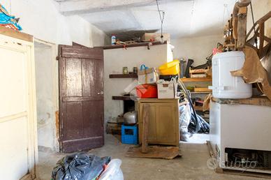 La prima abitazione ha doppio accesso posto sia sul lato della strada principale e sia sul vicolo che affaccia sul retro. Quello primario avviene da una saracinesca che immette su un cortile coperto di circa 29 mq. Successivamente abbiamo tre locali a forma rettangolare comunicanti tra di loro. Infine è presente un'ampia soffitta accessibile dal cortile per mezzo di una scala esterna.