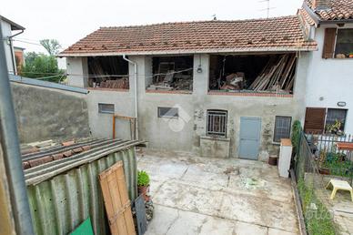 L'accesso all'altro immobile avviene per mezzo di cancello carraio che porta in un ampio cortile di circa 65 mq. Su questo si affacciano un corpo di fabbrica dove sono presenti 3 box auto e l'antico fienile. Di fronte abbiamo la parte abitativa dove si compone di due ampi locali sul fronte, più un terzo sul retro, con uscita sul vicolo posteriore. Salendo al primo piano troviamo altre due stanze da letto matrimoniali e un ampio sottotetto.