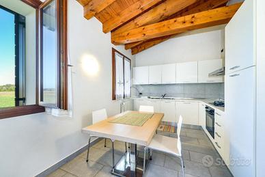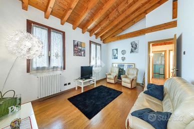 Proponiamo in vendita a Campocroce elegante soluzione semindipendente suddivisa in due appartamenti con ricovero attrezzi di circa 250 mq e giardino privato.