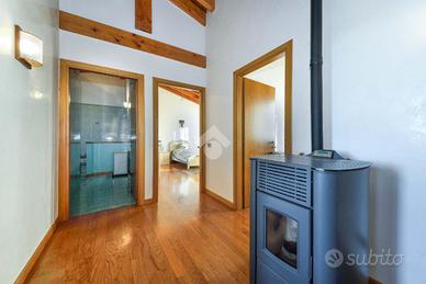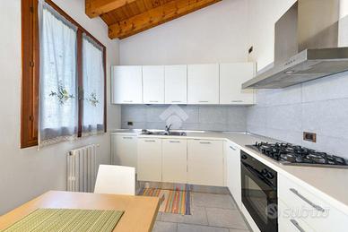 Al piano terra troviamo ingresso sulla luminosa zona giorno con cucina separata due camere da letto ed un bagno finestrato con doccia. A completare il piano troviamo un magazzino comunicante con l'abitazione ad oggi adibito a taverna ed ampio garage di pertinenza con ampia lavanderia collegata.