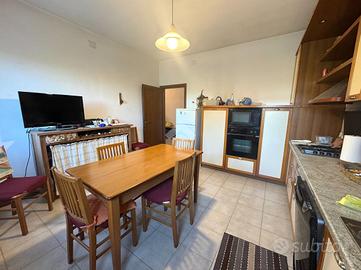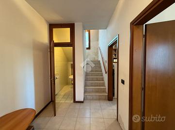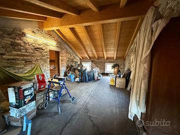 La soluzione di sviluppa su tre livelli; al piano terra troviamo la zona giorno con cucina separata e bagno di servizio con doccia. Salendo, al piano primo, abbiamo due camere da letto matrimoniali ed un bagno finestrato. Infine, all'ultimo piano, si sviluppa la mansarda con travi a vista.