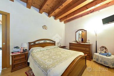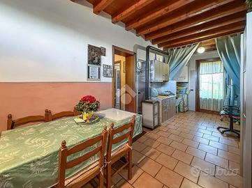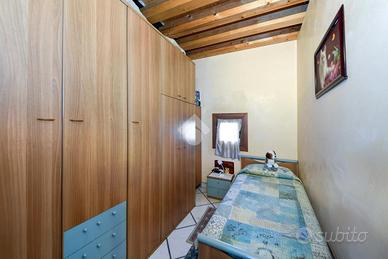 La soluzione è composta al piano terra da ingresso sul luminoso soggiorno, cucina separata, due camere da letto ed un bagno munito di doccia. A completare il piano troviamo un magazzino direttamente collegato con l'immobile che oggi funge da taverna e grande garage con ampia lavanderia collegata.