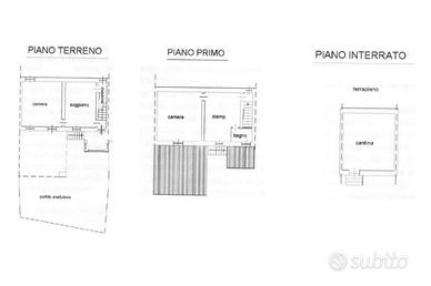L'abitazione è libera su due lati, al piano terreno troviamo il soggiorno con tinello e una camera da letto. Al piano primo sono presenti due camere da letto e un bagno. Completa la proprietà una cantina al piano interrato utilizzabile come tavernetta.