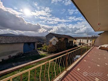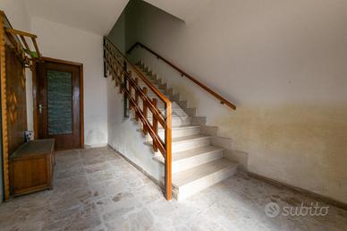 La scala interna porta al piano superiore, dove abbiamo tre camere da letto matrimoniali. La cucina è abitabile. Il soggiorno è ampio con camino funzionante e uscita sul balcone con vista panoramica. Il bagno è dotato sia di doccia che di vasca. Sul retro dell'abitazione è presente una porzione di terreno di proprietà ad uso esclusivo di circa 1.000 mq.