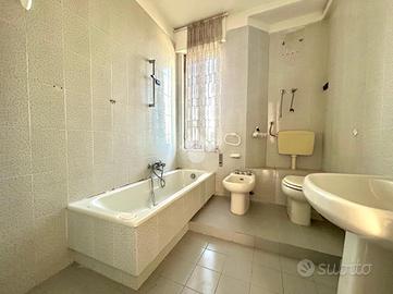 Salendo al secondo piano troviamo un comodo disimpegno che accompagna alla camera matrimoniale e al secondo bagno con vasca.