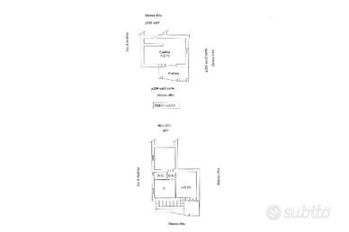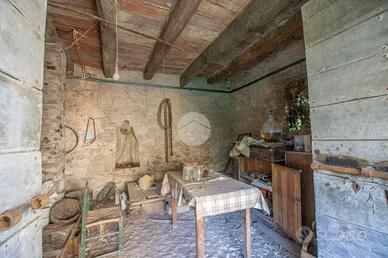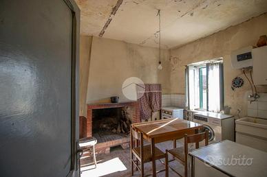 L'immobile, che misura 130 mq, si sviluppa su due livelli: al piano primo troviamo un soggiorno, una cucina abitabile con camino, una camera da letto ed un bagno; al piano terra troviamo invece una grande cantina e due locali magazzino.