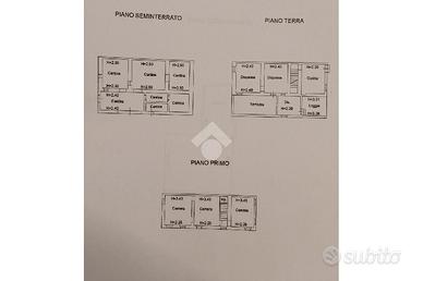 Il piano primo ospita tre spaziose camere matrimoniali, ognuna con una vista panoramica sulle colline circostanti. Al piano seminterrato si trovano le cantine, il garage e un capanno, perfetto per riporre attrezzi e utensili da giardino.