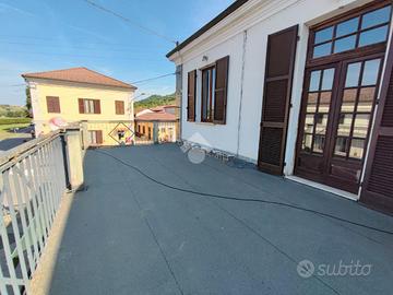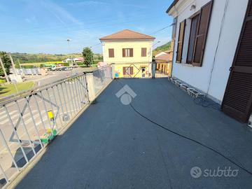 La proprietà è sita in frazione Palazzo, comune di Montegioco, in posizione di forte passaggio con ampio parcheggio poco distante e ideale per le attività commerciali come l'attuale rivendita Tabacchi/ BAR / Alimentari. L' immobile è diviso in diverse unità: al piano terra il locale commerciale e ampio magazzino mentre al primo piano un grazioso appartamento e la vecchia locanda. L' ingresso carraio, tramite l'alto androne, porta all'ampio cortile di circa 150 mq e da qui si può accedere al magazzino, al retro del locale commerciale, al primo appartamento più piccolo e, tramite scala secondaria in ferro, ai locali della vecchia locanda. L' appartamento ha ingresso sulla cucina con canna fumaria, piccolo disimpegno, salotto, camera da letto e bagno. I locali della locanda invece sono otto: si tratta di 8 camere matrimoniali tutte finestrate e con pavimenti originali. Una camera, in particolare, è arricchitta dal carattestistico dipinto sul soffitto, ancora in ottime condizioni. Il terrazzo scoperto è di circa 30 mq. La scala interna unisce i piani e si possono raggiungere il solaio e il locale commerciale al piano terra.