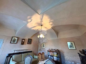 Al piano terra, la sala accoglie con una suggestiva volta e dettagli che richiamano l'epoca di costruzione, mentre la cucina adiacente garantisce praticità e funzionalità. Al piano superiore, tre camere da letto offrono ampio spazio per la famiglia, con l'aggiunta di un balcone che regala una piacevole vista.