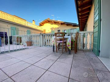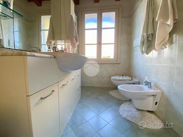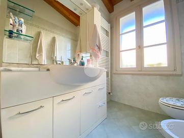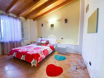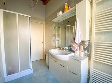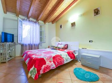 L'intera soluzione è caratterizzata dal soffitto con travi a vista, impianto di riscaldamento autonomo a radiatori e climatizzazione.
