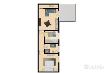 Porzione di casa bilocale - Soggiorno/Cucina - Studio - Camera matrimoniale - Bagno.