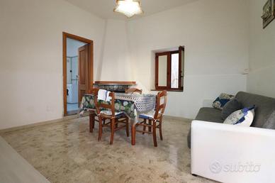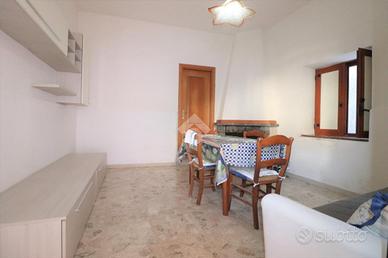 Al primo piano, con ingresso indipendente, la casa si estende su 65 m² commerciali e offre un'accogliente zona giorno con salone dotato di camino, una cucina funzionale, una camera da letto con bagno privato e un ulteriore bagno di servizio.