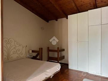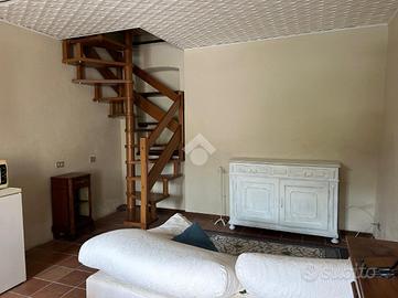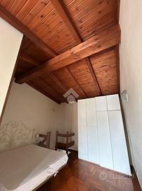 A mezzo di una bella scala a chiocciola in legno, si raggiunge il piano superiore dove si trova un'ampia camera da letto, caratterizzata da un elegante parquet e da travi in rovere, oltre ad un bagno finestrato con doccia.