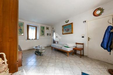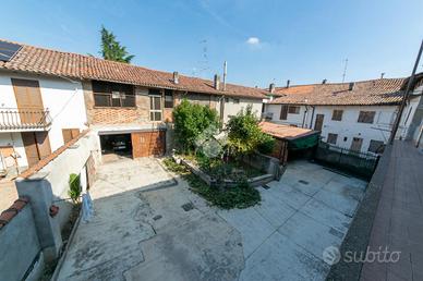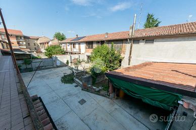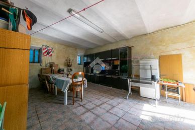 Al cortile interno si accede per mezzo di un passo carraio, suddiviso in parte in giardino e in parte lastricato. L'area è chiusa dall'ex fienile adibito a box doppio e locale di sgombero. Al contrario quella superiore si presenta ancora nello stato originario con la possibilità eventualmente di un recupero ai fini abitativi. Sempre all'interno del cortile troviamo un piccolo porticato.