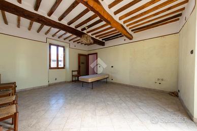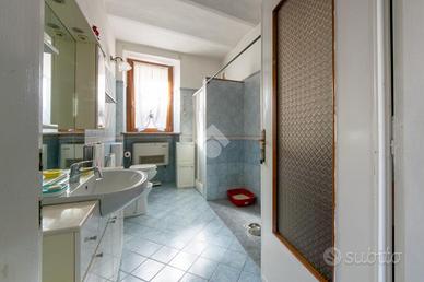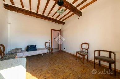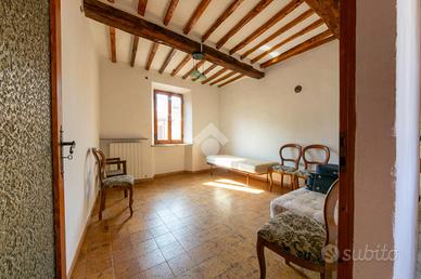 Salendo al primo piano troviamo un altro bagno con doccia, caratterizzato da un ampio disimpegno, e sono presenti tre camere da letto, due matrimoniali ed una singola. Due di queste sono caratterizzate da travi in legno a vista e in un'altra è presente un caminetto con la possibilità di essere riattivato. Sempre questo piano è valorizzato da due balconi posti uno dal lato del cortile, l'altro sul fronte strada.