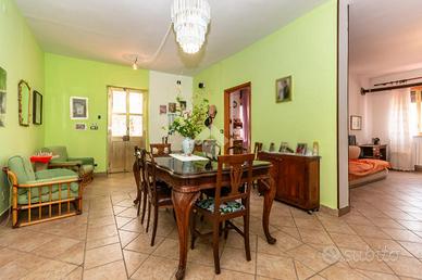 La porzione di bifamiliare, edificata nel 1980, si trova a Moriondo Torinese. La zona, comoda al raggiungimento delle vicine Castelnuovo Don Bosco e Riva presso Chieri, è servita dai mezzi pubblici e si trova nelle vicinanze dei servizi di prima necessità come la farmacia e il minimarket. L'immobile si trova in buono stato conservativo sia interno che esterno. Il giardino privato di 1000 mq circonda l'immobile sui tre lati. L'entrata tramite portoncino si apre sul soggiorno con la sala da pranzo. La cucina è abitabile. Il bagno è finestrato dotato di vasca e rivestito in ceramica. Vi sono due camere da letto di pianta quadrata. I serramenti esterni sono tutti in alluminio con il doppio vetro e dotati di tapparelle. I pavimenti sono stati rifatti nel 2010 come sono stati rivisti anche tutti gli impianti. Il riscaldamento è autonomo alimentato da una caldaia a metano attraverso i radiatori e da una stufa a legna. È presente il box auto di ampia metratura, in cui è possibile ricavare un ulteriore locale abitabile.
