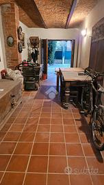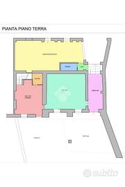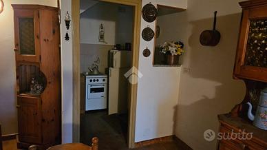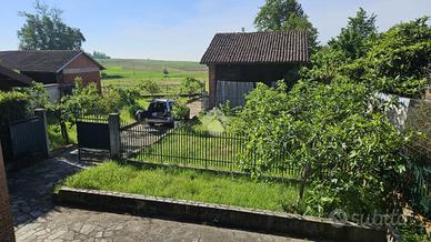 Il primo piano ospita una camera da letto con bagno e l'area dell'ex fienile, dove sono già iniziati i lavori di recupero e che offre la possibilità di ricavare altre camere o ambienti abitativi secondo le proprie esigenze. A completare la proprietà vi sono un comodo portico e un giardino pianeggiante di circa 500 metri, perfetto per vivere momenti all'aperto.