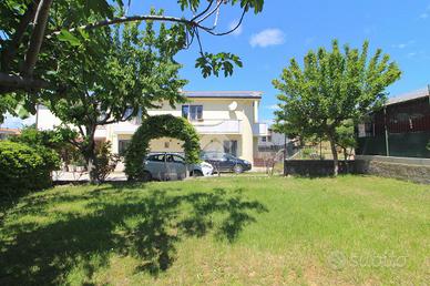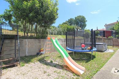 La proprietà è arricchita da un soffitto abitabile e un giardino privato recintato, perfetto per momenti di relax all'aria aperta. La corte esterna con ripostiglio aggiunge ulteriore praticità. Il terreno edificabile annesso di 860 mq ha un indice di cubatura di 0,45 mq/mq e permette di realizzare un edificio fino a 10,50 metri di altezza. Mentre 27 piante d'olivo e varie piante da frutto adornano l'area, offrendo un piccolo angolo di paradiso.