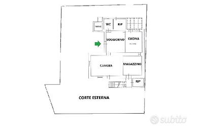 La struttura esistente comprende un soggiorno, una cucina, una camera matrimoniale, un bagno, un ripostiglio e un locale ad uso magazzino.