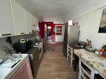 Si eleva su due livelli e si ha accesso dal cortile ad uso esclusivo; al piano terra sono presenti un ingresso, una cucina dotata di balcone con affaccio sul corso principale e due camere da letto.
