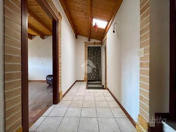A Muzzana del Turgnano, in una tranquilla via interna a pochi passi dal centro, una spaziosa casa semindipendente disposta su tre livelli fuori terra.