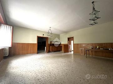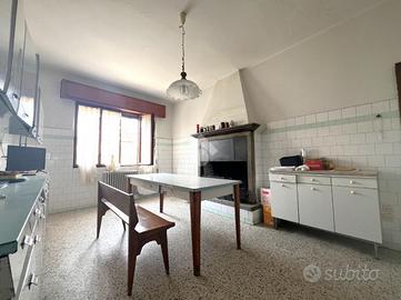 attualmente il piano rialzato ospita due ampi saloni, una cucina abitabile con camino, un tinello corredato da pratico ripostiglio e un bagno di servizio.