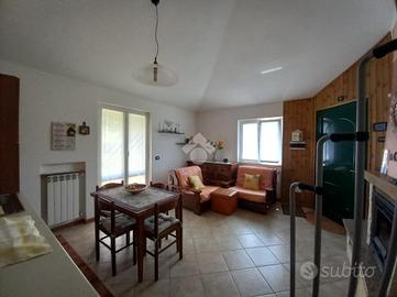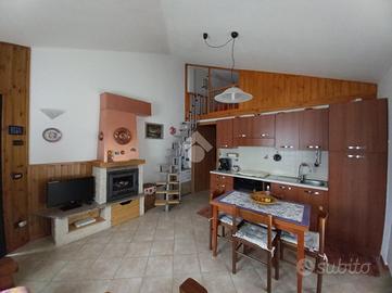 soggiorno con angolo cottura, camera da letto matrimoniale, camera soppalcata e bagno finestrato.