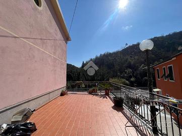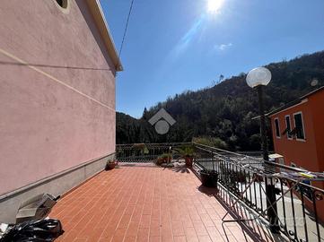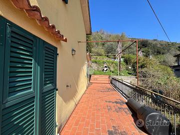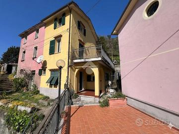 Conscenti - nel comune di Ne, proponiamo in vendita casa semindipendente, costruita nel 1980. Questa abitazione di 123 mq è disposta su più livelli. Al piano terra troviamo un'ampia terrazza vivibile, l'ingresso si apre su un salotto dotato di un camino a legna, la cucina, adiacente al salotto, è facilmente accessibile e funzionale. Una scala a chiocciola conduce al primo piano, dove si trovano ulteriori spazi abitativi quali un bagno finestato, un secondo salotto con ingresso indipendente su un'altra terrazza la quale conduce al terreno su più livelli della proprietà di circa 600 metri cintato. Salendo ulteriormente tramite la scala interna accediamo all'ultimo livello della casa trovando la camera da letto mansardata con travi a vista. Completa la proprietà un ampio box con una buona area di manovra.