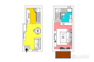 Tramite scala interna si accede al secondo piano dove sono presenti il bagno finestrato dotato di doccia e la camera matrimoniale, resa luminosa dalla porta finestra dalla quale si accede al balcone.