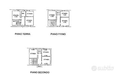 al piano terra troviamo la cucina, il soggiorno, il bagno ed una comoda cantina, al piano primo tre camere ed il bagno. Il secondo è composto in modo uguale al precedente descritto.