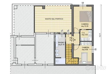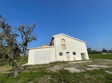 La porzione di rustico si sviluppa su due livelli, con ampi spazi luminosi e presenza di travi a vista in legno restaurate, che conferiscono un tocco di eleganza rustica.