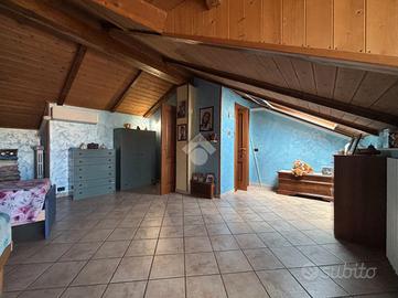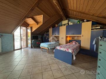 In contesto tranquillo, a pochi passi dal centro paese, l'immobile è una casa semindipendente disposta su due livelli, in buono stato generale. Al piano terra si sviluppa la zona giorno con un ampio ambiente che unisce cucina e soggiorno, impreziosito da un termo camino a legna, oltre a una camera da letto e un bagno. Al piano superiore si trova una mansarda luminosa, suddivisa in due camere da letto, di cui una facilmente divisibile per ricavare ulteriori spazi, un secondo bagno e l'accesso a un terrazzo.