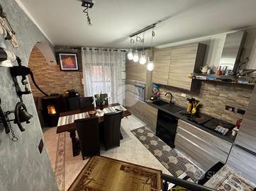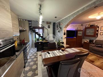 La casa seminidipendente, situata in una zona centrale di None, si sviluppa su più livelli. L'ingresso si apre su un'ampia zona giorno con angolo cottura a vista. Dal lato opposto, si trovano un locale lavanderia - attualmente adibito a doppio servizio - e un locale di sgombero. Proseguendo, tramite una comoda scala si accede al primo piano, costituito da una camera da letto con balcone che affaccia sul cortile privato e un bagno finestrato con vasca. Il secondo piano è costituito da un locale sottotetto ampio e luminoso, grazie alla presenza di due velux. La soluzione vanta delle temperature interne ottimali grazie alla presenza di pompe di calore caldo/freddo, di una termostufa e di riscaldamento autonomo con caldaia a condensazione sostituita nel 2020. Tutti gli infissi, alcuni con doppio e altri con triplo vetro, sono stati sostituiti nel corso della ristrutturazione interna avvenuta nel 2020 e sono completati da persiane. La casa è dotata di pannelli fotovoltaici per la produzione di energia elettrica e di un pozzo per l'acqua. Il cortile interno di proprietà può essere sfruttato anche per parcheggiare la propria auto.