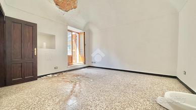 Al piano superiore si trova la camera matrimoniale, uno spazio che, offre un grande potenziale, dispone di un accesso a un terrazzino, da cui è possibile godere di una vista sul centro storico circostante. Il piccolo bagno di servizio, pur essendo funzionale, è anch'esso da ristrutturare per essere reso più pratico e in linea con le necessità moderne.