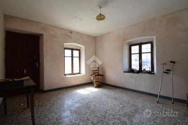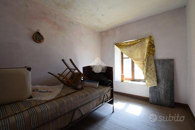 Nella collina di Nus, l'immobile è semindipendente e presenta lavori di ristrutturazione. Tramite una scala esterna si accede al primo piano il quale ospita un unico vano con cucina e bagno. Tramite la scala inerna si accede alla zona notte con tre camere e l'uscita sul balcone. Completa il garage, la cantina e l'area verde.Il riscaldamento è autonomo con stufa a legna.