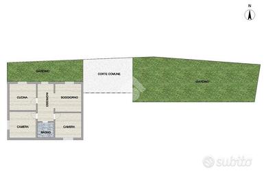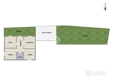 Soggiorno - Cucina - Due camere - Bagno - Garage - Ripostiglio - Magazzino - Giardino