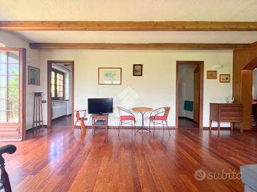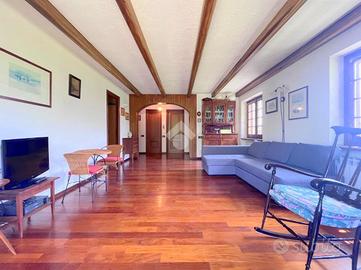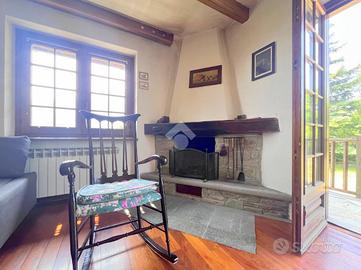 IN TRATTATIVA. L'appartamento è parte di una casetta semindipendente con giardino, situata in una zona soleggiata e tranquilla, nella borgata di Savoulx. L'accesso tramite terrazzino privato è direttamente nell'ampio soggiorno con camino e pavimentazione in legno, che dona all'ambiente il tipico aspetto di casa di montagna. Questo locale gode di grande luminosità ed uscita diretta sul giardino. La cucina è abitabile e dotata di forno a legna. Bagno finestrato e con doccia, camera da letto matrimoniale e cameretta completano la composizione del piano rialzato. Una scala interna conduce al piano seminterrato nel cui è presente il secondo bagno, con vasca ed anch'esso finestrato. Il corridoio separa la tavernetta con camino, una stanza e il locale lavanderia. Su questo piano inoltre troviamo l'accesso diretto all'ampia autorimessa, comoda per auto, moto, bici o altri mezzi. Il box auto è accessibile da Via La Roche ed ha portellone telecomandato. Il giardino ad uso esclusivo dotato di barbecue è di oltre 100 metri quadrati, è soleggiato tutta la giornata ed è perfetto per godersi al meglio le giornate estive. Riscaldamento autonomo a metano.