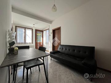 Ingresso, soggiorno ampio e luminoso con cucinotto separato, bagno finestrato con doccia, camera singola e camera matrimoniale. Dalla camera singola, tramite una porta finestra, si può accedere alla parte esterna dov'è possibile trovare una casetta in legno/ricovero attrezzi che dispone di luce, acqua e gas.