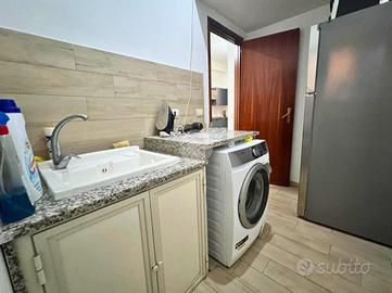 La casa è composta da un ampio ambiente open-space al piano terra, che comprende una cucina e un soggiorno, completamente ristrutturato e con uscita diretta sul terrazzino, ideale per godersi momenti di relax all'aperto. Sempre al piano terra troviamo un bagno con doccia e una comoda lavanderia, per un'ulteriore funzionalità della casa.