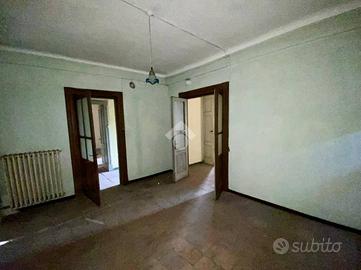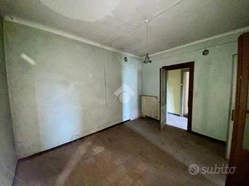 Al piano primo, accessibile tramite scala interna, si sviluppa la prima unità abitativa composta da un ampio ingresso, due camere da letto, un luminoso soggiorno e una cucina abitabile.