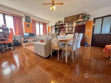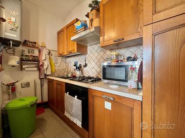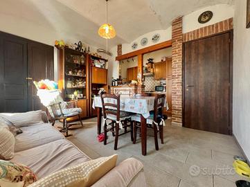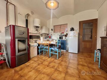 Il piano superiore ospita un secondo appartamento quattro locali composto da cucina e soggiorno separati, due camere da letto e un bagno finestrato dotato di vasca. I balconi godono di piacevole vista sulle colline del monferrato. Al piano interrato è presente una cantina versatile, ideale come spazio di servizio o deposito.