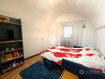 Dalla scala esterna si accede direttamente all'immobile composto da zona giorno, organizzata in un unico ambiente open space che unisce soggiorno e cucina, creando uno spazio pratico e funzionale, arricchito dalla presenza di un elegante camino che dona calore e atmosfera.